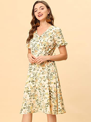 Allegra K Donna Abito Floreale con Scollo a V Incrociato con Scollo a V e Maniche Svasate Beige XL