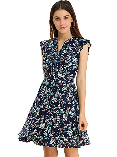 Allegra K Donna Mini Abito Floreale Volant Estivo Casual Scollo V Mezza Manica Blu M