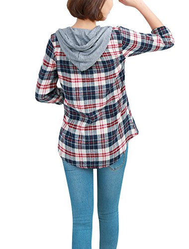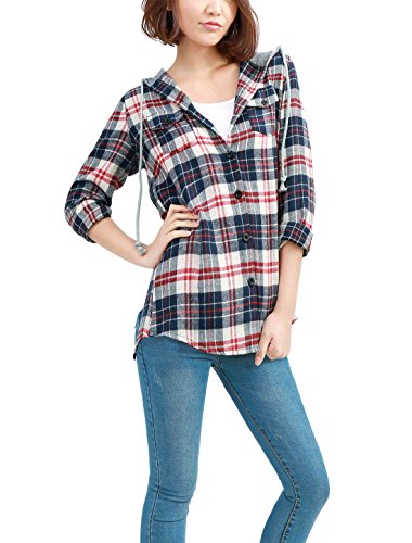 Allegra K Donna Aletta Toppa Tasche Cappuccio Coperta Camicia Top Scuro Blu S