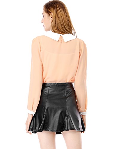Allegra K Donna Bambola Colletto Maniche Lunghe Pullover Camicia Di Chiffon
