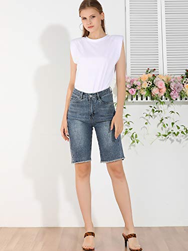 Allegra K Donna Bermuda Elasticizzato Jeans Corti Pantaloni Denim Lavato Blu S