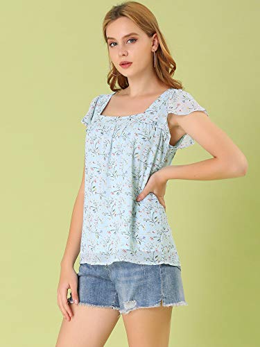 Allegra K Donna Top Camicetta in Chiffon Balze Manica a Strati Stampa Floreale Blu S