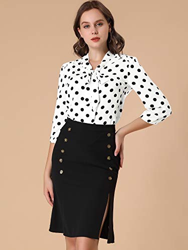 Allegra K Donna Camicetta Collo Cravatta Polsino Elastico Spalla Increspata Pois Festa di San Patrizio Bianco XS