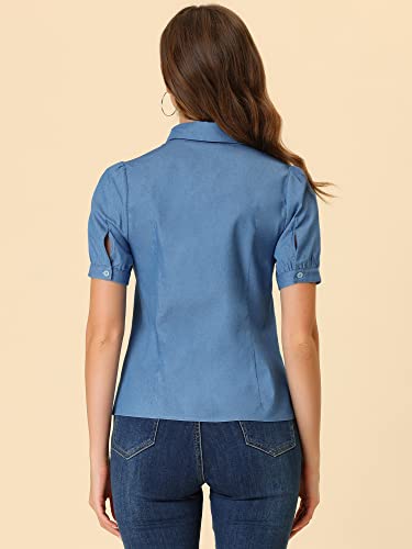 Allegra K Donna Camicetta di Jeans a Maniche Corte a Sbuffo Abbottonato con Colletto a Punta Azzurro S