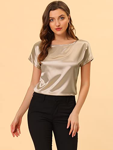Allegra K Donna Camicetta da Lavoro con Scollo a Barchetta Vintage a Maniche Corte in Raso Elegante Beige L