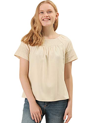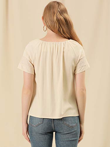 Allegra K Donna Top Camicetta Ricamata Girocollo Pieghettata Manica Raglan Casual Beige L
