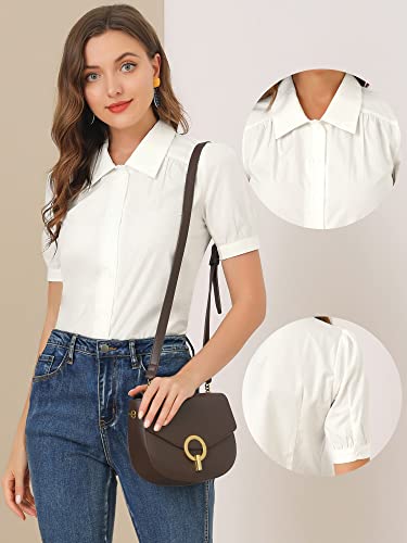 Allegra K Donna Camicia Elegante in Cotone a Maniche Corte con Bottoni sul Davanti Bianco XS