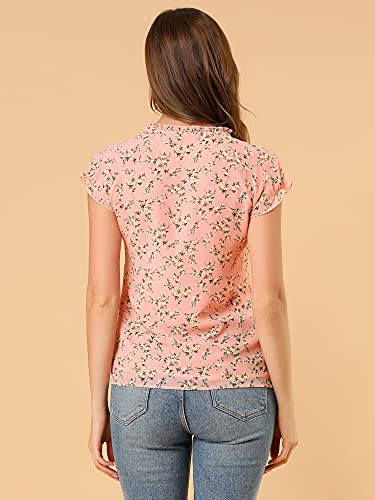 Allegra K Donna Camicia Floreale Top Camicetta Casual a Fiori Blusa in Chiffon Manica ad Aletta Increspature Viaggio Estate Rosa Scuro XL