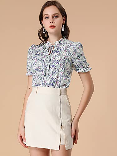 Allegra K Donna Camicia Lavoro Maniche Corte Floreale Collo Volant Bianca XL