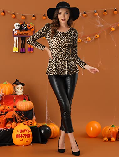 Allegra K Donna Camicia con Peplo Stampato Leopardato a Maniche Lunghe con Scollo Tondo Marrone S
