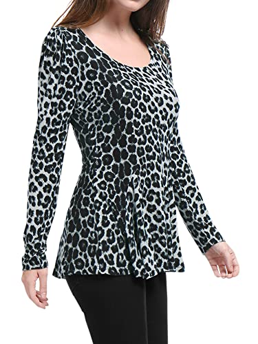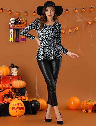 Allegra K Donna Camicia con Peplo Stampato Leopardato a Maniche Lunghe con Scollo Tondo Grigio M