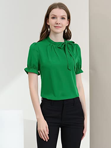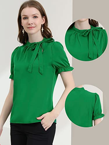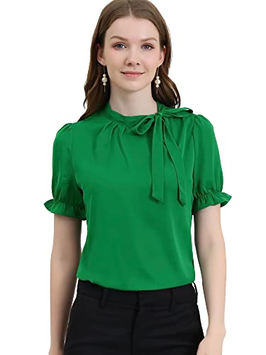 Allegra K Donna Camicie Collo Farfalla Elegante Camicetta Maniche Corte Ufficio Verde Scuro XL