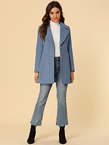 Allegra K Donna Cappotto Lungo Elegante Giacca Tasche Frontale Dentellato Pulsante Monopetto Manica Lunga Inverno Grigio Blu M