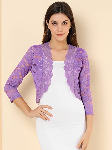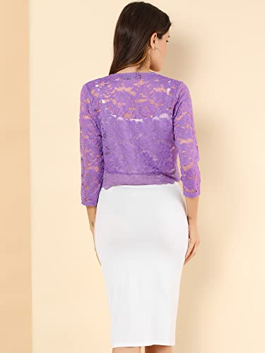 Allegra K Donna Elegante 3/4 Manica Puro Floreale Laccio Shrug Top Viola M