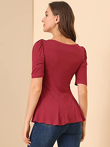 Allegra K Top da donna a maniche corte girocollo casual peplo, Rosso, 40