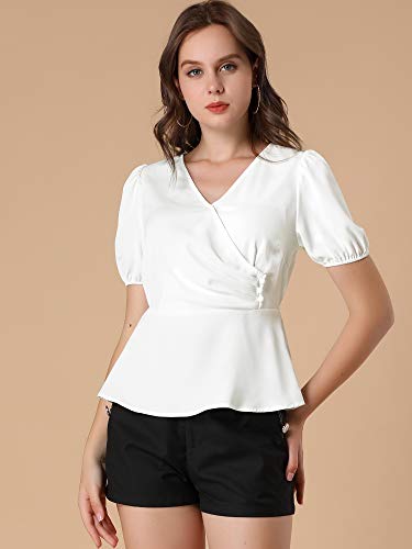 Allegra K Donna Top Peplo Avvolgente Maniche Corte Scollo V Bianco L