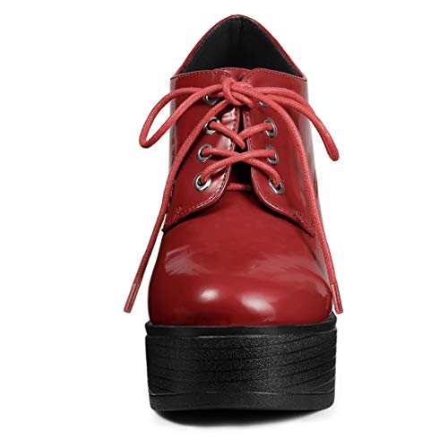 Allegra K Donna piattaforma Pizzo Alto tallone zeppa Stivaletti Rosso 41