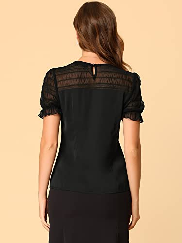 Allegra K Donna Top in Pizzo a Manica Corta con Scollo Rotondo con Chiusura a Foro di Goccia sulla Schiena Nero XL