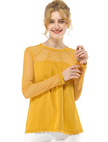 Allegra K Donna Pizzo Pannello Floreale contadina Camicia in Chiffon Top Giallo M