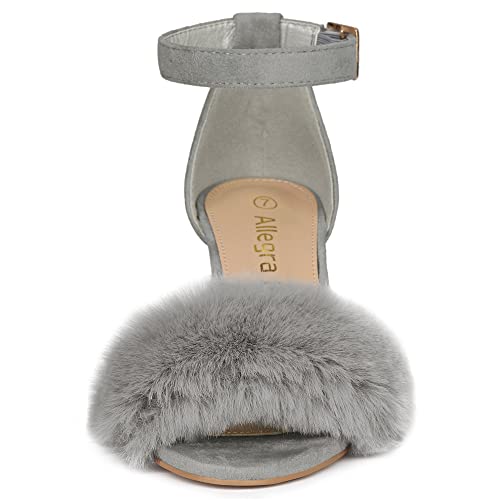 Allegra K Donna Sandali Tacco Largo Cinturino Caviglia Pelliccia Sintetica Grigio 39