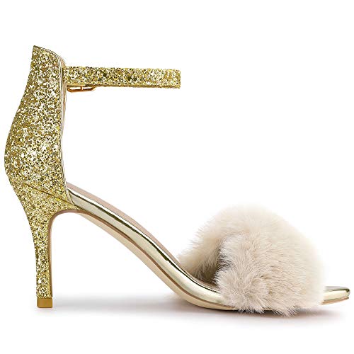 Allegra K Donna Sandali Tacco Spillo Pelliccia Sintetica Glitterata Oro 37