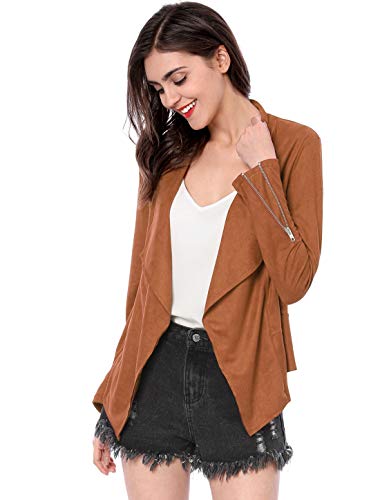 Allegra K Donne Giacca Corta Manica Lunga con Cerniera Lampo Polsini Drappeggiato Anteriore Finto Camoscio Giacchetto Rosso mattone S