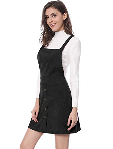 Allegra K Donne Pulsante Velluto A Coste Decor E Una Linea Suspender Mantello Globale Nero XS