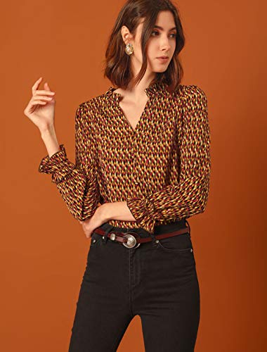 Allegra K Donne Ruffa V Collo Puffed Manica Floreale Stampa Blusa Top Marrone L