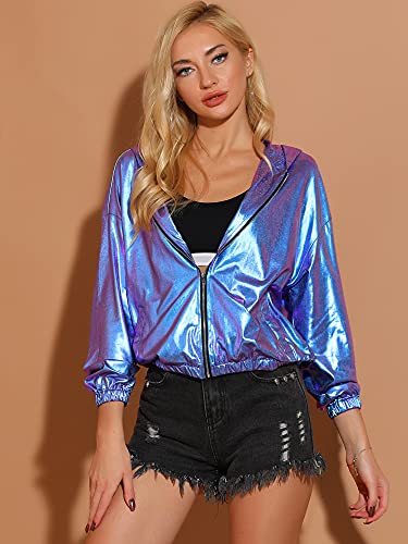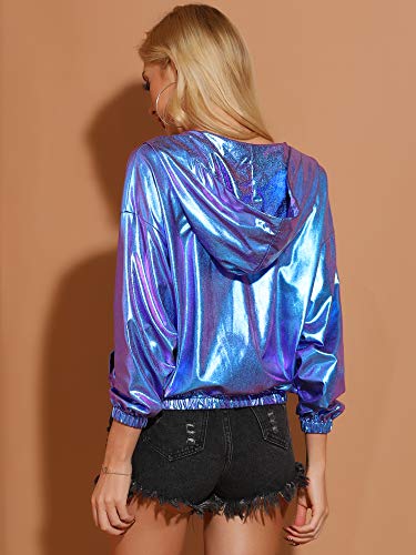 Allegra K - Giacca da donna con cappuccio e cerniera, a maniche lunghe, con cerniera Blu e viola. 52