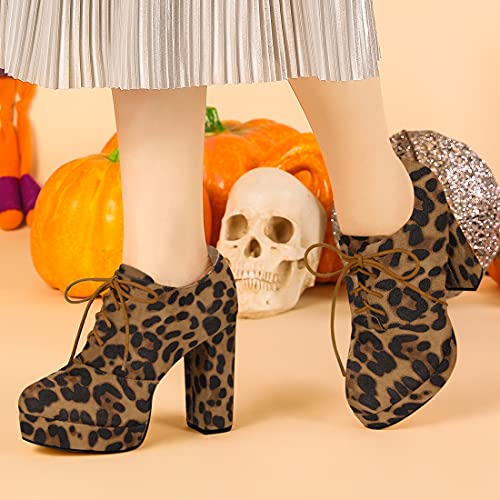 Allegra K Plateau Donne Tacco Blocco Stringato Stivali Marrone_1 38.5