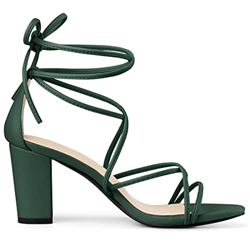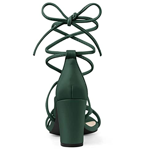 Allegra K - Sandali da donna con lacci e tacco spesso, (Verde scuro), 37 EU