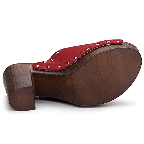 Allegra K Sandali da donna Open Toe Platform Block Heel Slides, Rosso, 37.5 EU