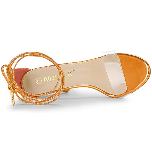 Allegra K Sandali da donna con tacco a spillo con lacci, Arancione, 38.5 EU