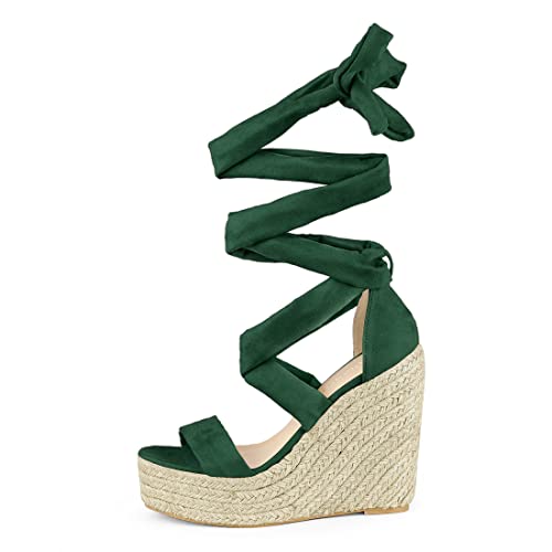 Allegra K - Sandali da donna con zeppa e zeppa, con lacci, Verde (Verde), 38.5 EU