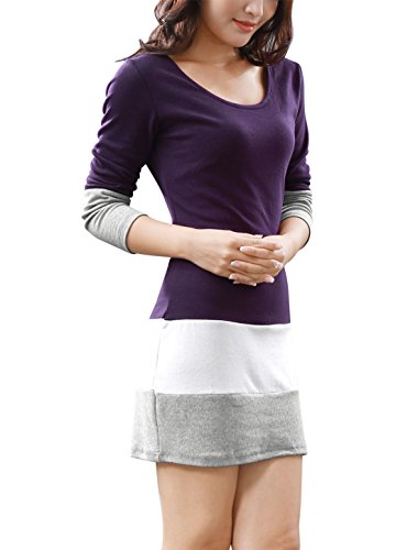 Allegra K Signore Pullover Colore Blocco Giuntura Viola Tunica Vestito Xs