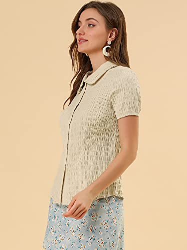 Allegra K Sweet Peter Pan - Camicia a maniche corte con bottoni, Beige, 52