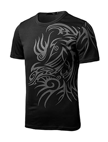 Allegra K Uomini girocollo manica corta Pullover tribale Stampa T Shirt Nero M