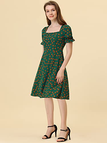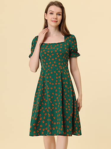 Allegra K Vestito Donna al Ginocchio Abito A Trapezio Manica Corta con Scollo Quadrato Floreale Verde M