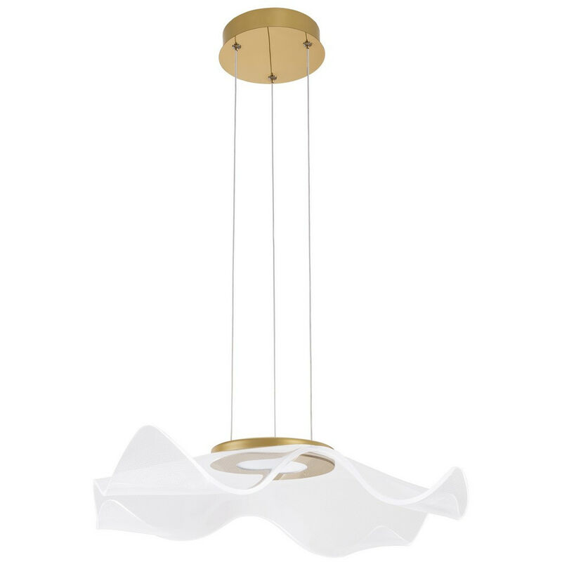 Merano Allen Plafoniera LED Integrata a Sospensione Alluminio Oro LED 30W 2046Lm 3000K | Finitura: oro | Materiale: alluminio, acrilico | Classificazione IP: IP20 | Altezza: 150cm | Lunghezza: 50 cm | Larghezza: 50 cm | Tipo di lampada: LED integrato | Lampadina inclusa: Sì | Dimmerabile: No | Kelvin: 3000 K | Lumen: 2046lm | Potenza (massima): 30W
