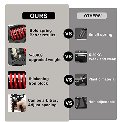 【Resistenza regolabile】: la resistenza dell'attrezzo per le mani può essere facilmente regolata da 5 a 60 kg, in modo da poterla regolare in base alle proprie esigenze, il che è molto adatto a uomini e donne che vogliono esercitare la forza della presa.