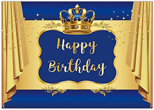 Allenjoy 2,1 x 1,5 m Royal Prince Sfondale Happy Birthday King Blue and Gold Crown Glitter Party Fotografia Sfondo Bambino Bday Decorazione Banner Forniture Fotobooth Prop