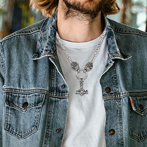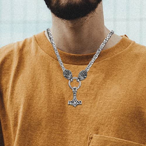 AllerPierce Thor Hammer Collana da uomo in acciaio inox con testa di lupo norreno amuleto vichingo Thor Mjolnir collana con ciondolo a forma di martello