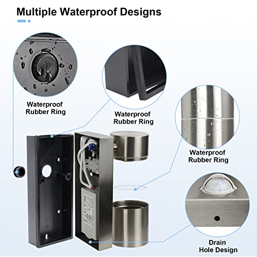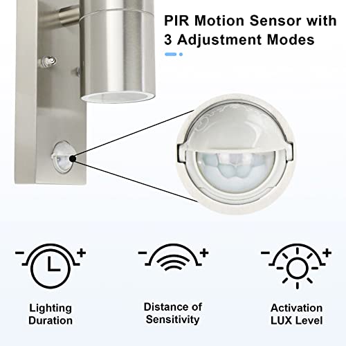 Allesgute Lampada da esterno con rilevatore di movimento LED IP44 Moderna Lampada da esterno in acciaio inox spazzolato Lampada da parete per giardino balcone