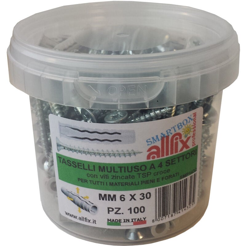 In nylon, a 4 settori. Completi di vite testa svasata piana, impronta PH. Secchiello composto da: 50+50 pezzi mm 8