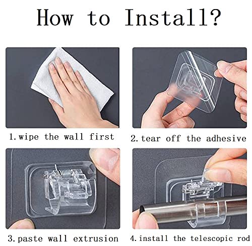 Potente adesivo sul retro, facile da installare. non c'è bisogno di praticare fori, senza chiodi, nessun danno al muro. Clip di fissaggio per asta rotonda non forata, supporto da parete per asciugamani, tenda da bagno, tenda da parete, anello da parete. Con un retro autoadesivo, facile da installare senza attrezzi.