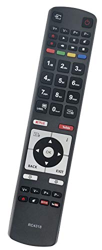 ALLIMITY RC4318P RC4318 Telecomando Sostituisci per Telefunken 4K Ultra HD TV 32DTH531 40DTF531 49DTU652 55DTU652 D40U297M4CW JT-55UBS300 JT-65UBS300 TE43292S31Y2P XU43E512 XU55E512