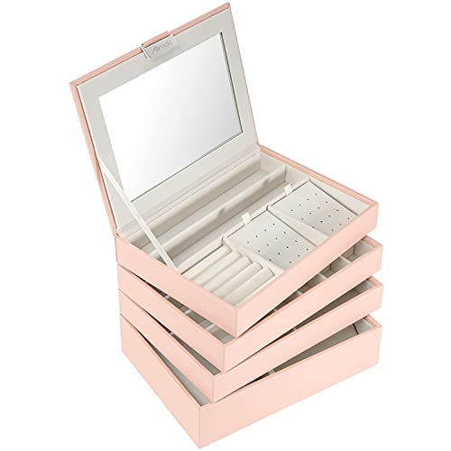 Allinside Scatole Portagioie Impilabili con Coperchio a Specchio, Vassoi Cofantetto Portagioie in Pelle PU per Anelli Orecchini Collane Bracciali, per Ragazze Donne, 4 Strati, Rosa