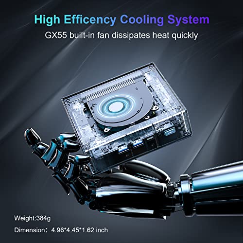 【Mini e potente】GX55 Small Mini PC Con dimensioni di 4,95*4,4*1,5 pollici, è incredibilmente portatile e può essere portato ovunque, dotato di un buon sistema di raffreddamento e di una ventola a bassa rumorosità che garantisce prestazioni più veloci per affrontare i flussi di lavoro più rapidamente che mai.
