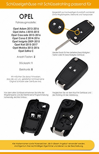 Alloggiamento per chiavi con chiave 2 tasti per Opel Adam Astra J Cascade corsa e Insignia Karl Mokka Zafira C (Op14)