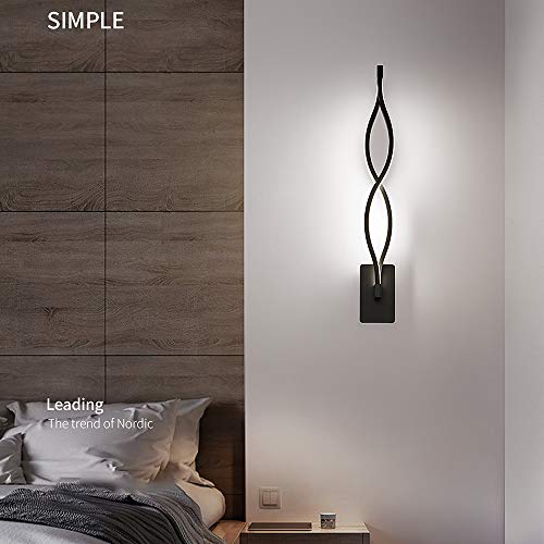 ALLOMN Lampada Parete Comodino, Lampada da Parete a Spirale Lampada da Parete Moderna a LED Curva Lampada da Parete Moderna e Minimalista Corridoio Scala Lampada da Lettura16W (Nero, Bianco Freddo)